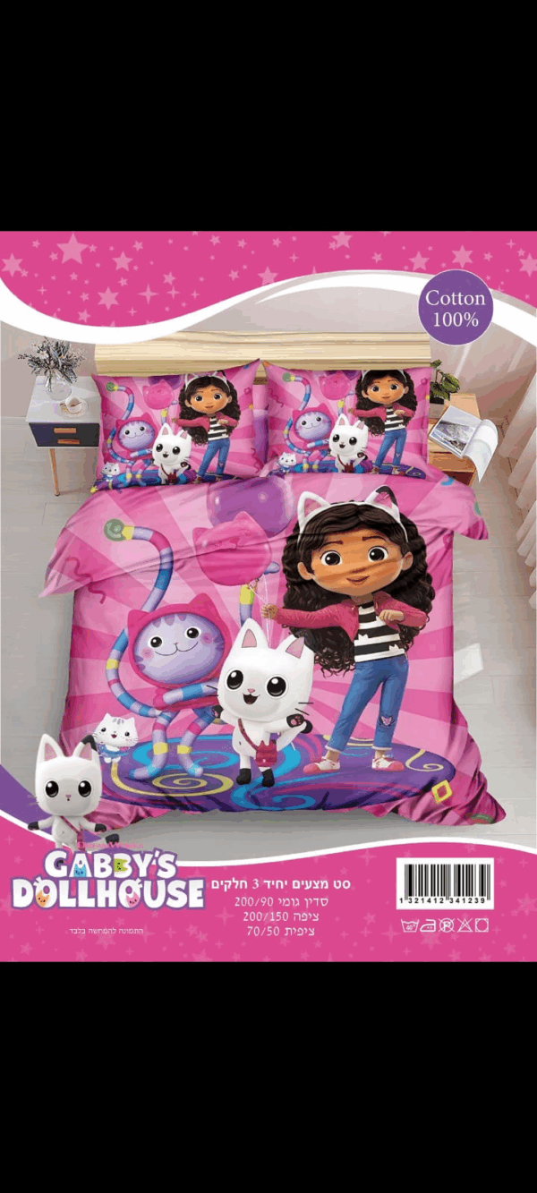 סט מצעים לילדים למיטה וחצי דגם גבי