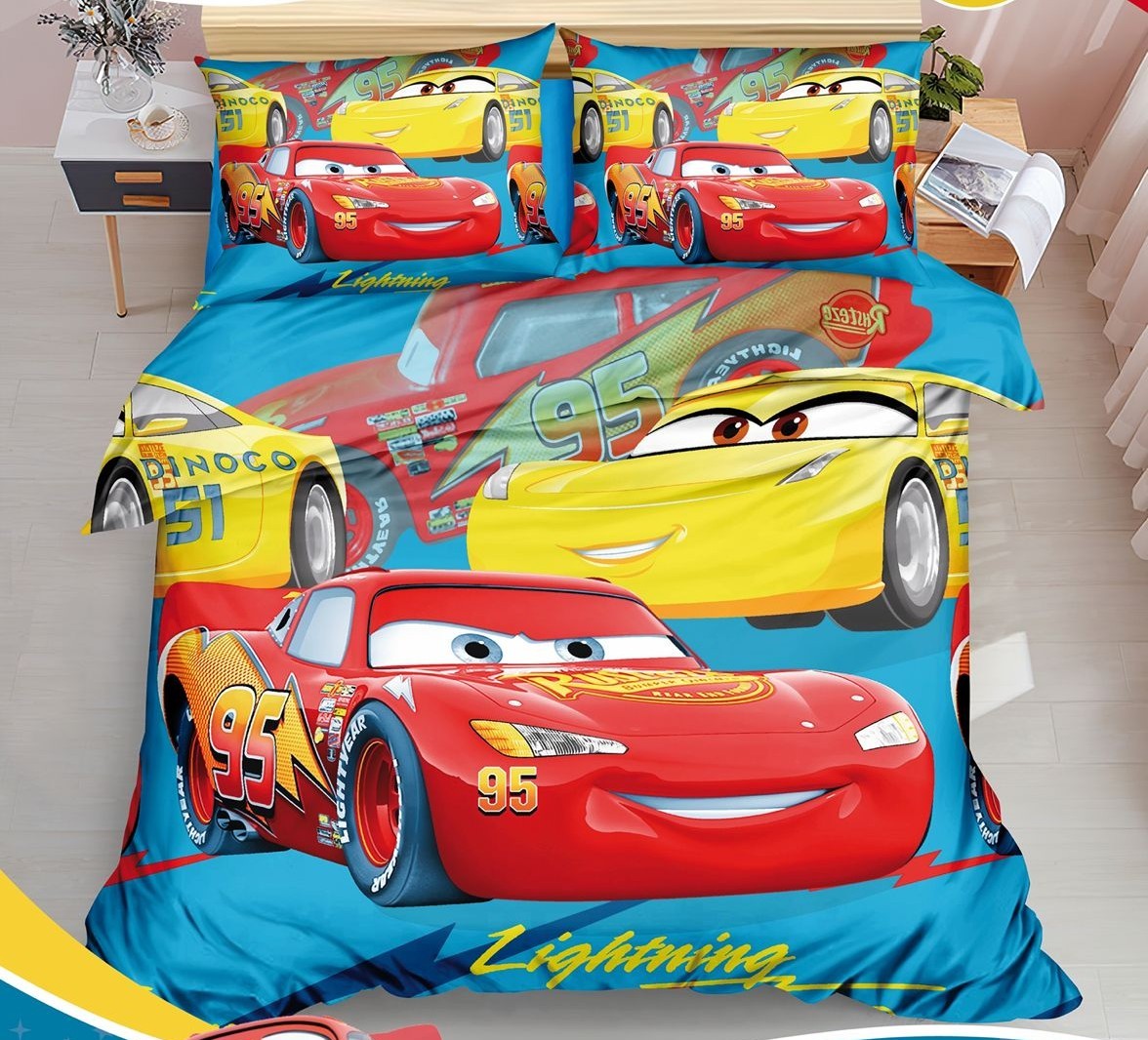 סט מצעים לילדים למיטה וחצי דגם מכוניות
