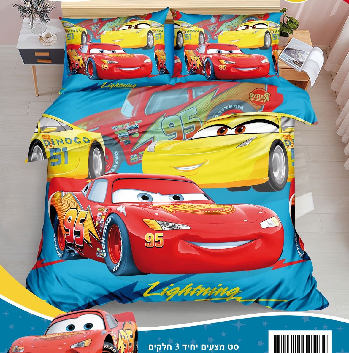 סט מצעים לילדים למיטת יחיד דגם מכוניות