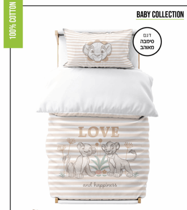 סט מצעים למיטת מעבר/תינוק דגם סימבה מאוהב